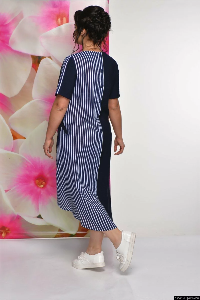 Платье большого размера выполнено из турецкого стрейчкоттона:в полоску и однотонного,имеются еще другие сочетания :красное и серое,разм 50,52,54,56