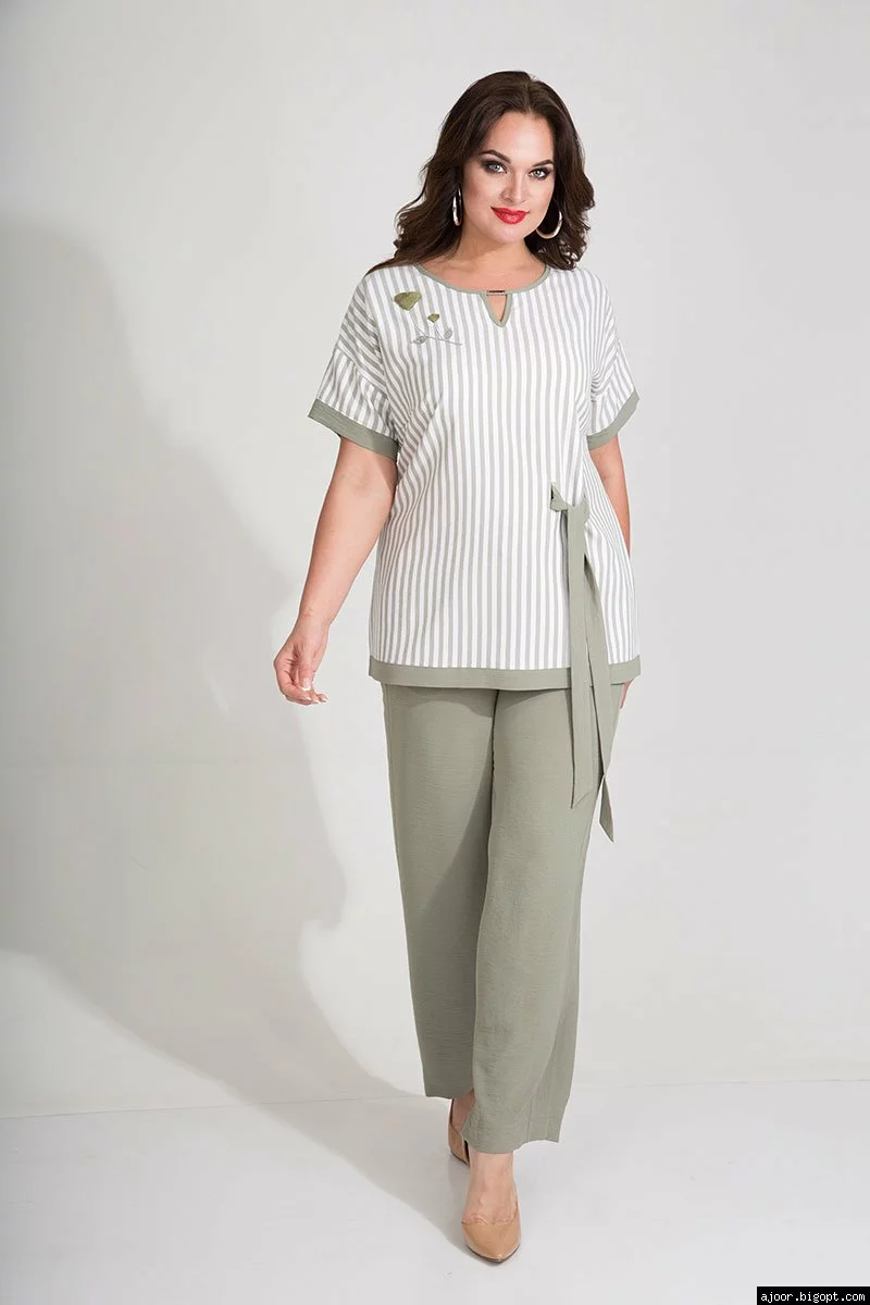 Брючный костюм лен-полоска