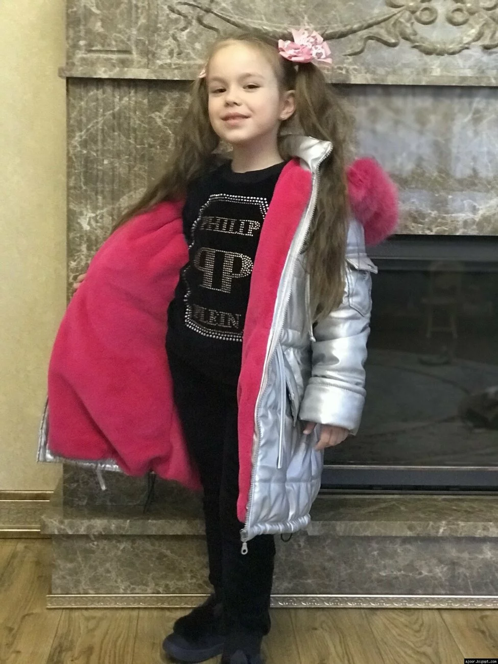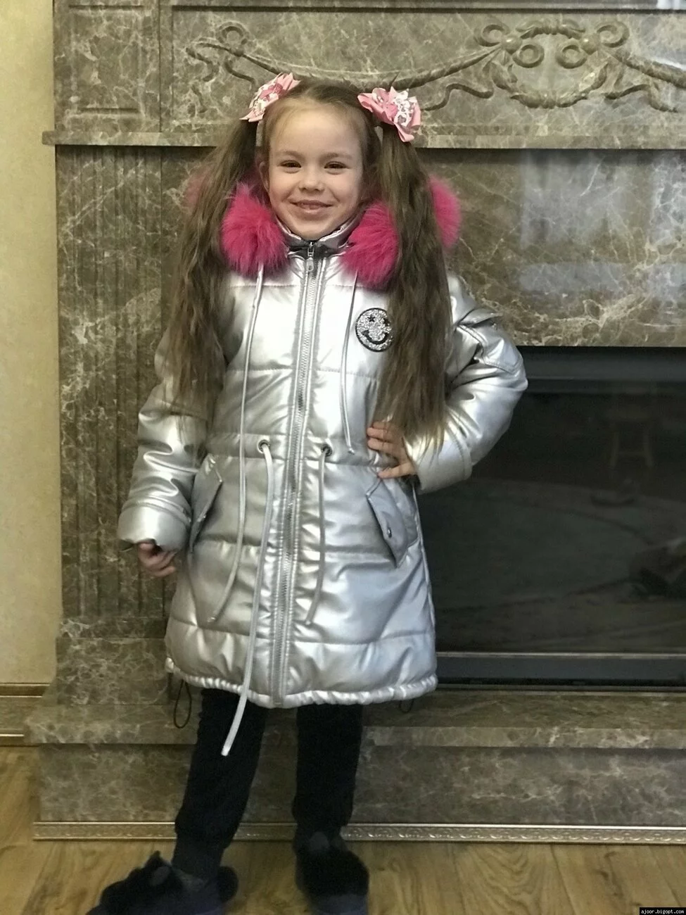Детская парка выполнена из экокожи серебристого цвета,утеплитель силикон,а также мех малинового цвета под цегейку,капюшон дополнен опушкой малинового цвета из песца ,цвет как на фото,разм 104-110-116-122-128-134