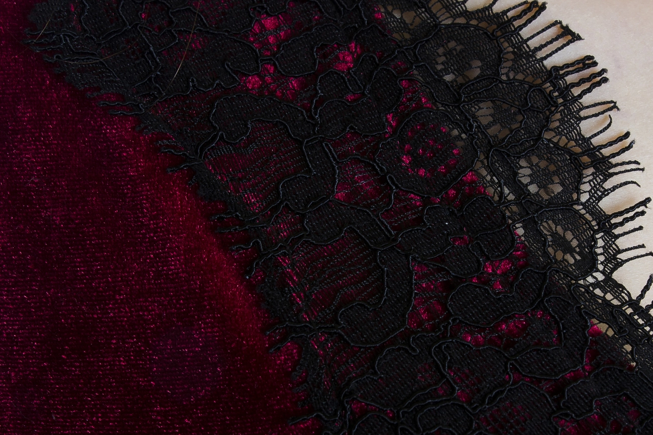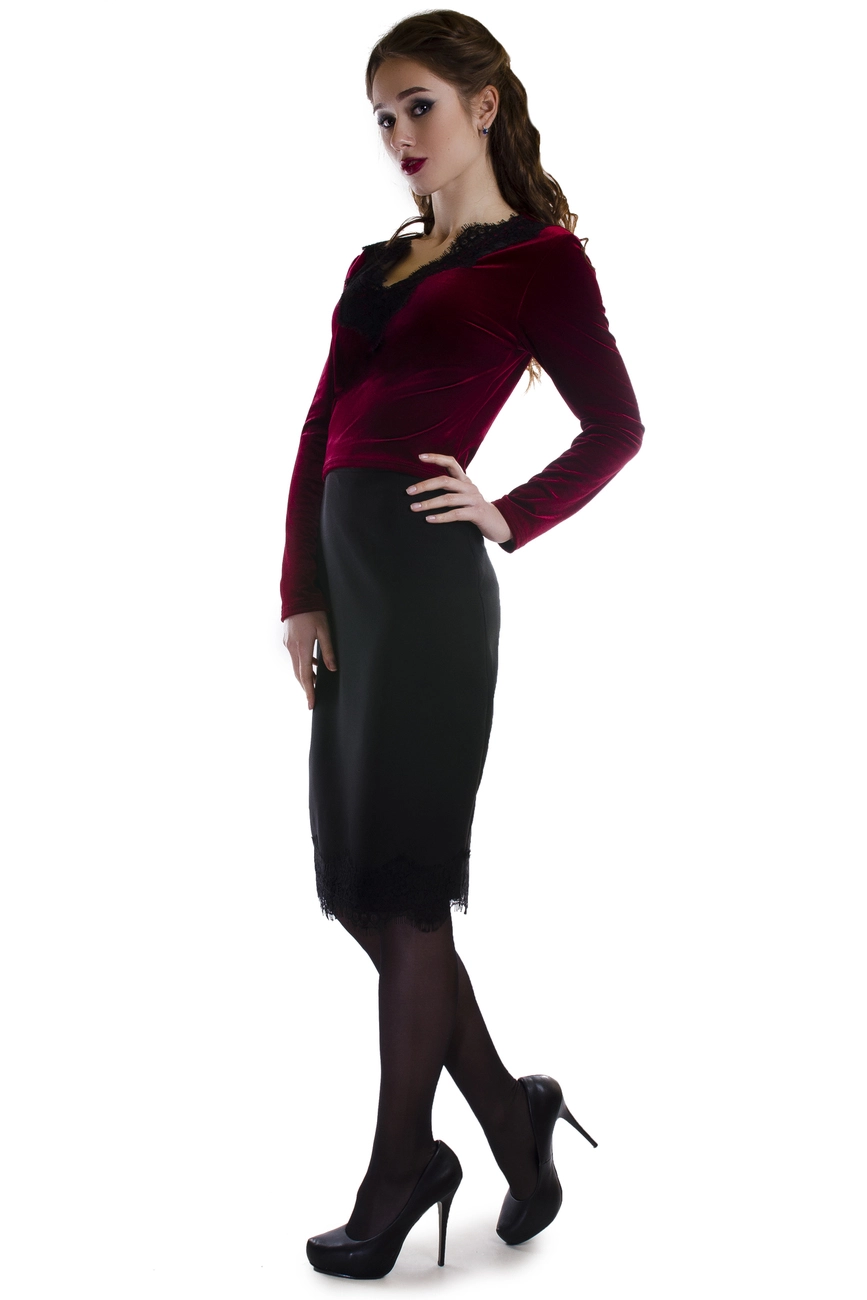 Блуза из стрейч-велюра бордового цвета. Отделка французским