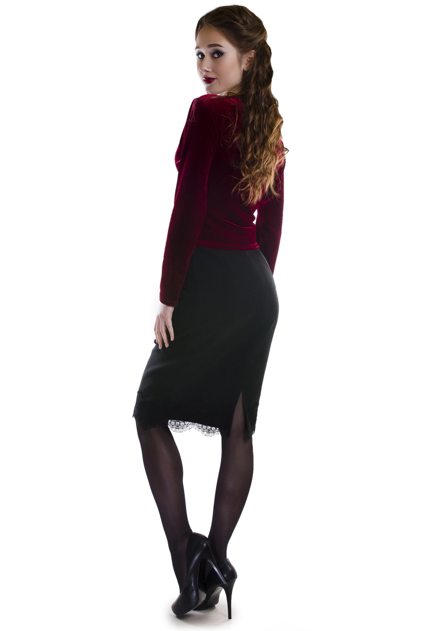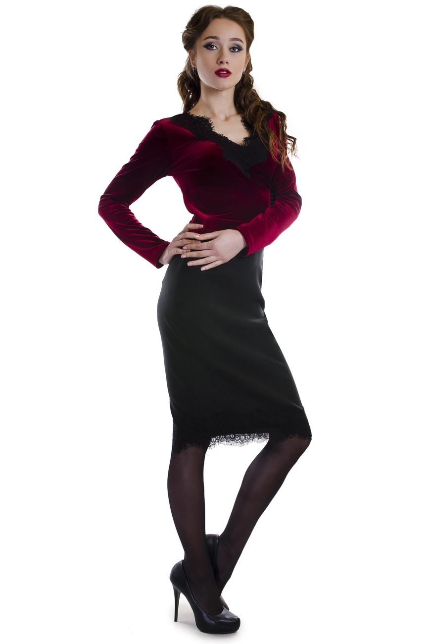 кружевом, юбка из крепа черного цвета внизу французское кружево