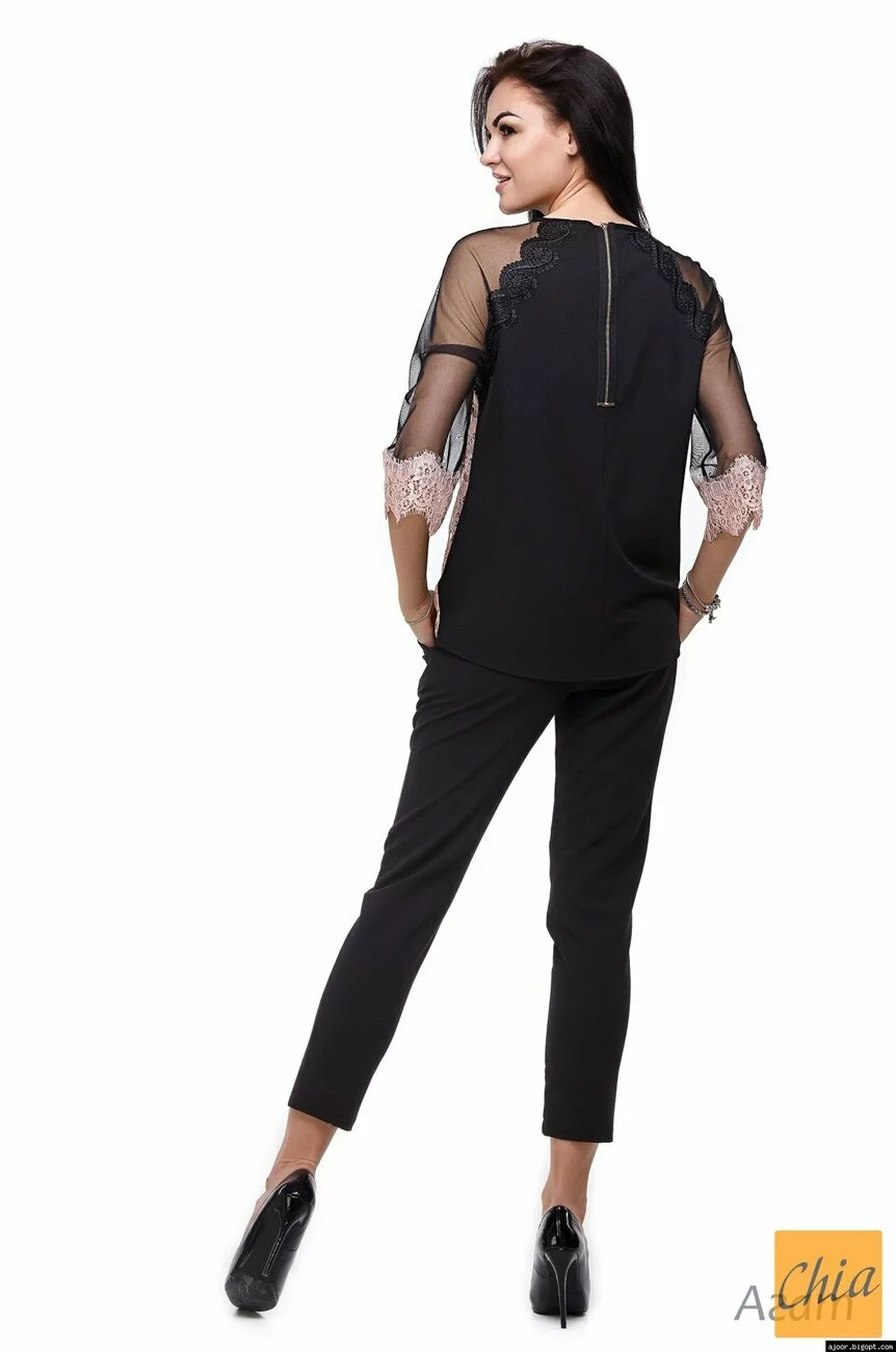 Брючный костюм выполнен из нескольких видов ткани:брюки,зауженные книзу-из стрейчдайвинга,туника-гипюр+сетка ,отделка кружево,разм 44-46-48
