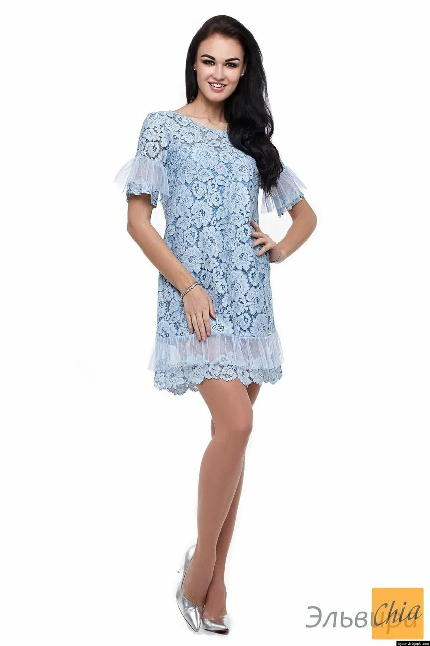 Молодежное платье выполнено из крученного гипюра,добавлена сетка,разм 42-44-46,цвета :нежно голубой,пудра,синий