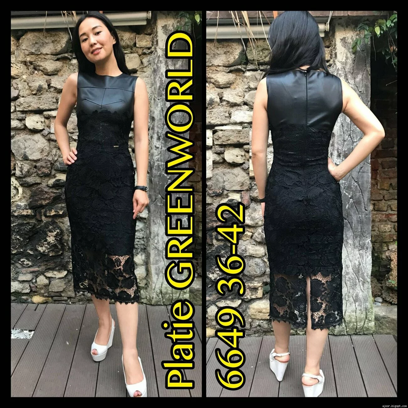 Платье комбинированное ,лиф платья выполнен из кожзама,удлиненная юбка из гипюра