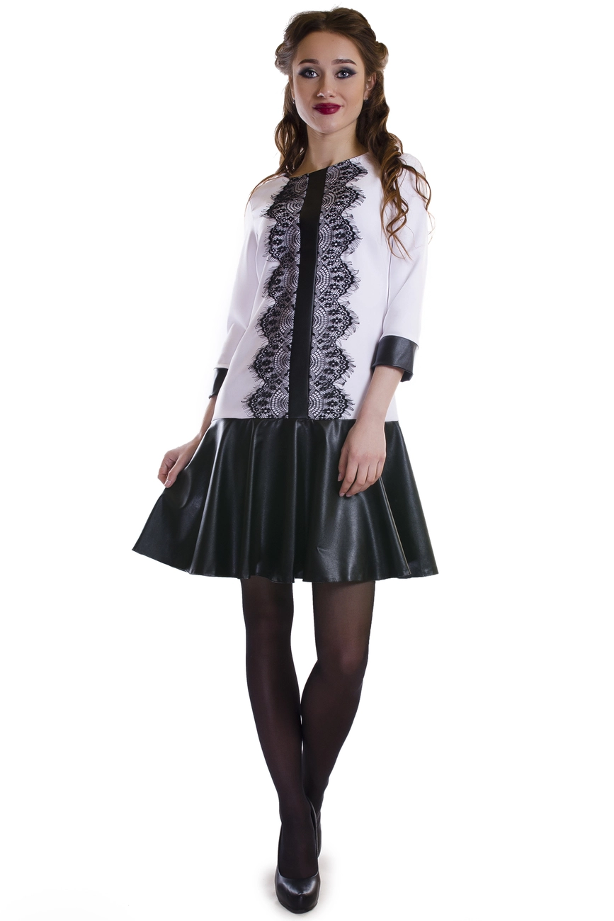 Отделка кружевом, юбка солнце-клеш, рукав с мажетом из экокожи
