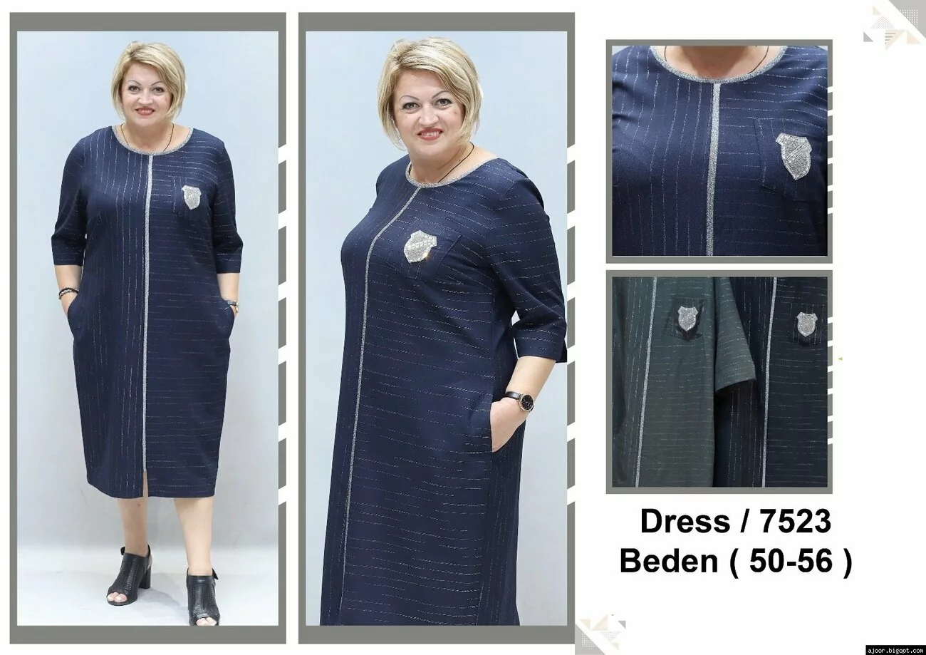 Женское платье батального размра выполнено из плательного крепа,турецкого производства в мелкую полоску,отделка -люрекс,цвета :красный.синий,серый,изумруд,разм 50,52,42,56.