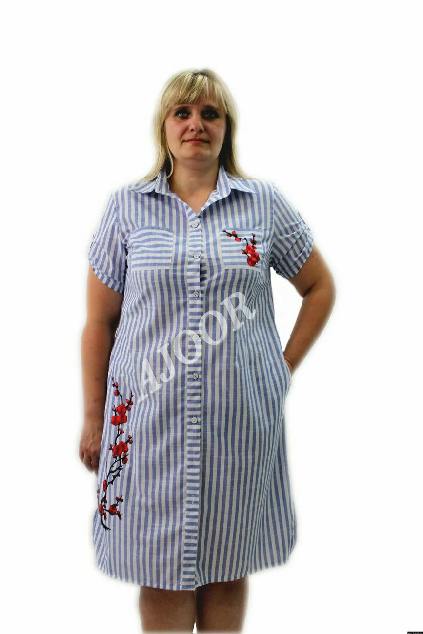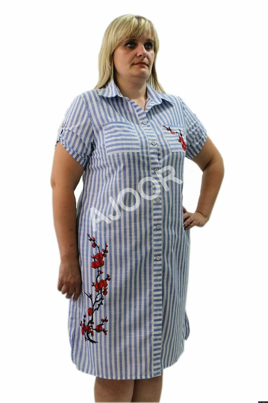 Платье выполнено в батальной серии,ткань коттон турецкого производства,платье украшено апликацией ввиде цветущей сакуры,на полочке платья застежка на пуговицы,по бокам разрезы ,на спинке кокетка ,к платью прилагается пояс.Разм 48-50-52-54.